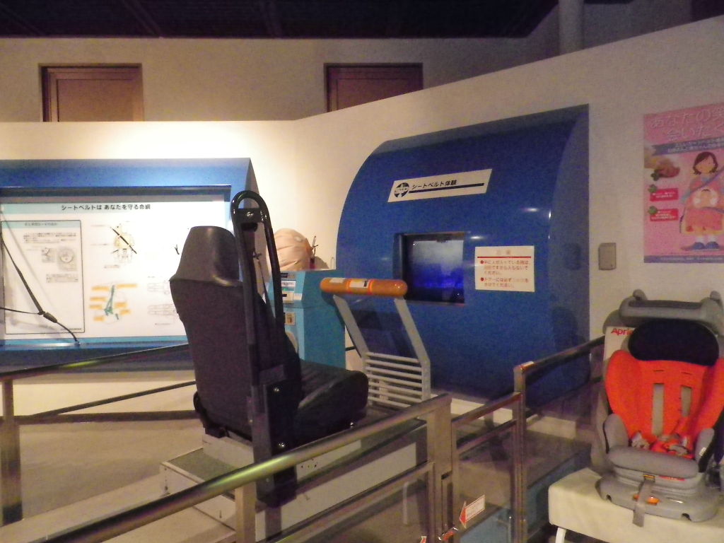 シートベルトを着用しての衝撃の模擬体験。