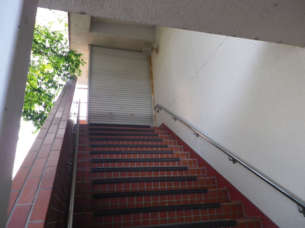 入り口から図書館の入口があった2階へ続く階段を見てみると‥‥