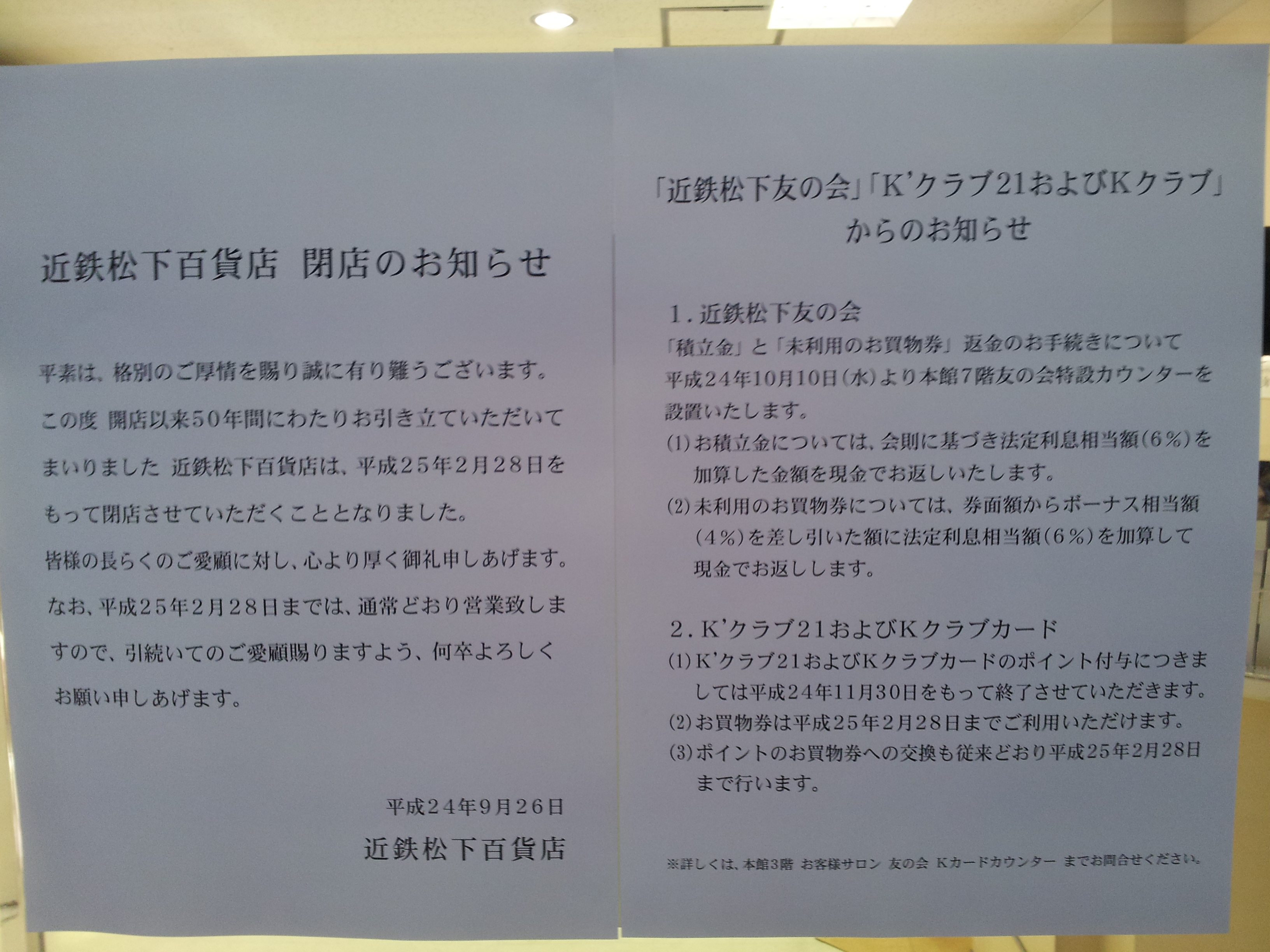 近鉄松下百貨店 閉店のお知らせ|近鉄松下百貨店
