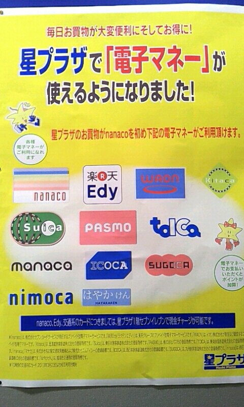 さて、その星プラザ、今度は電子マネーが使えるようになったんですが、