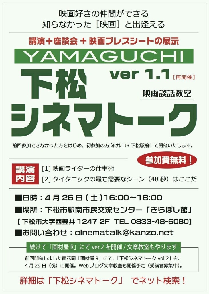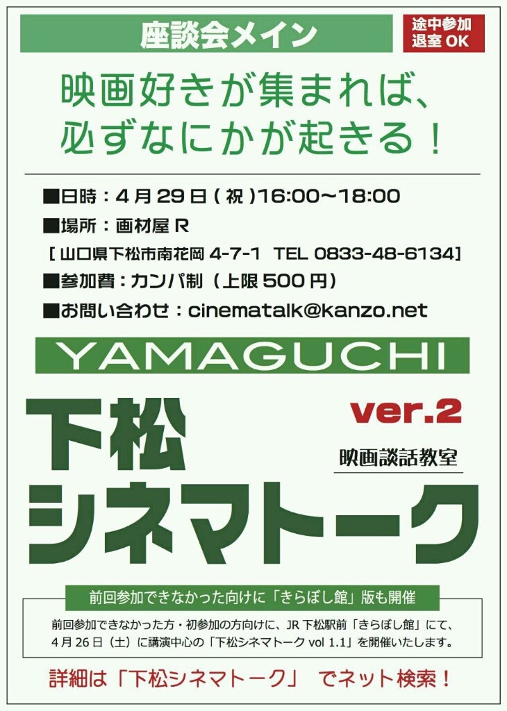 もしくは「下松シネマトーク」で検索してみられてはいかがでしょうか。