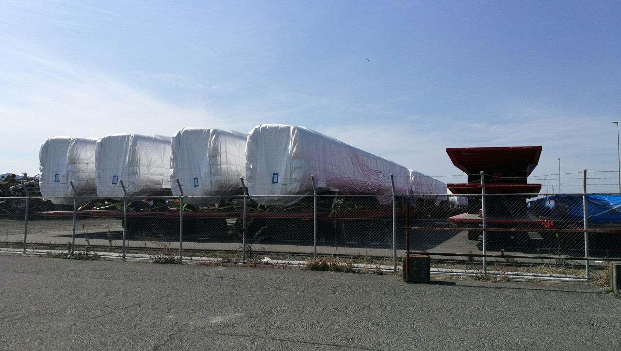 先週日曜日、日立製作所笠戸事業所から第2埠頭へ陸送された高速鉄道車両。