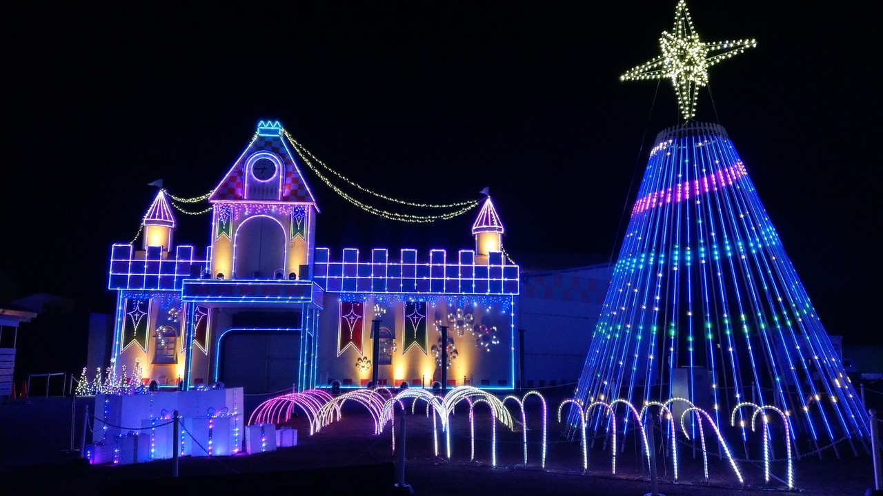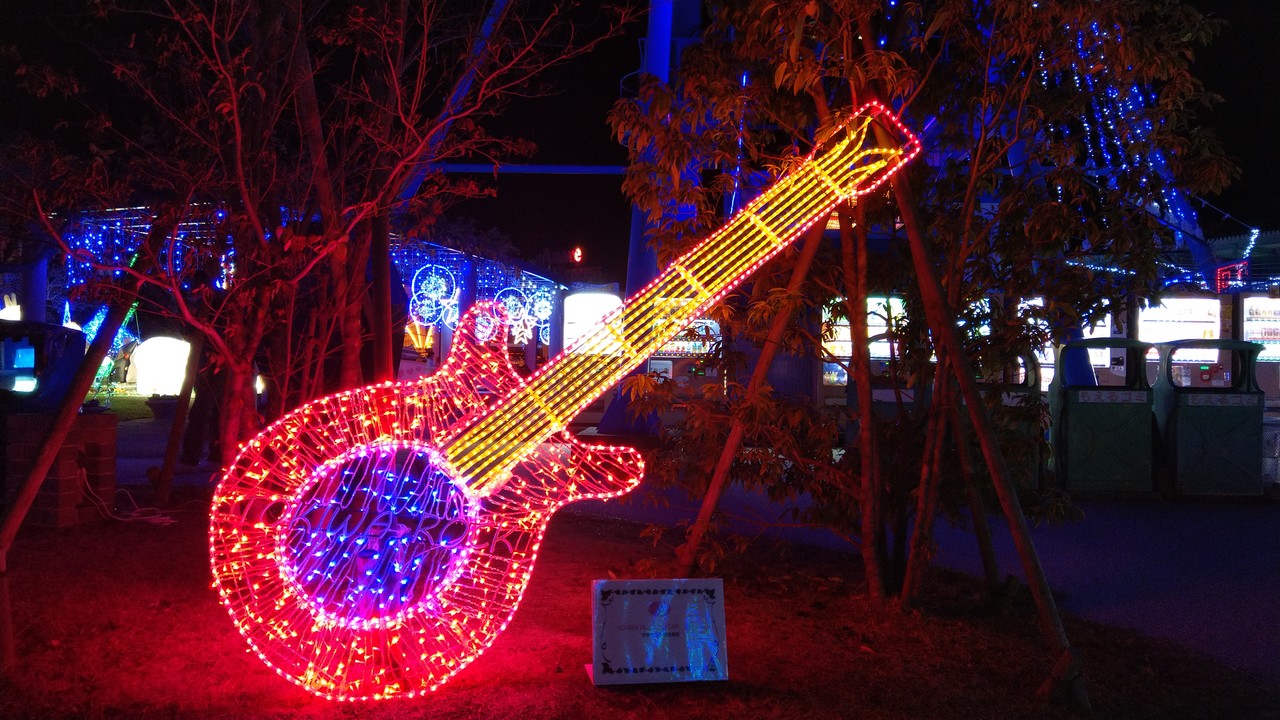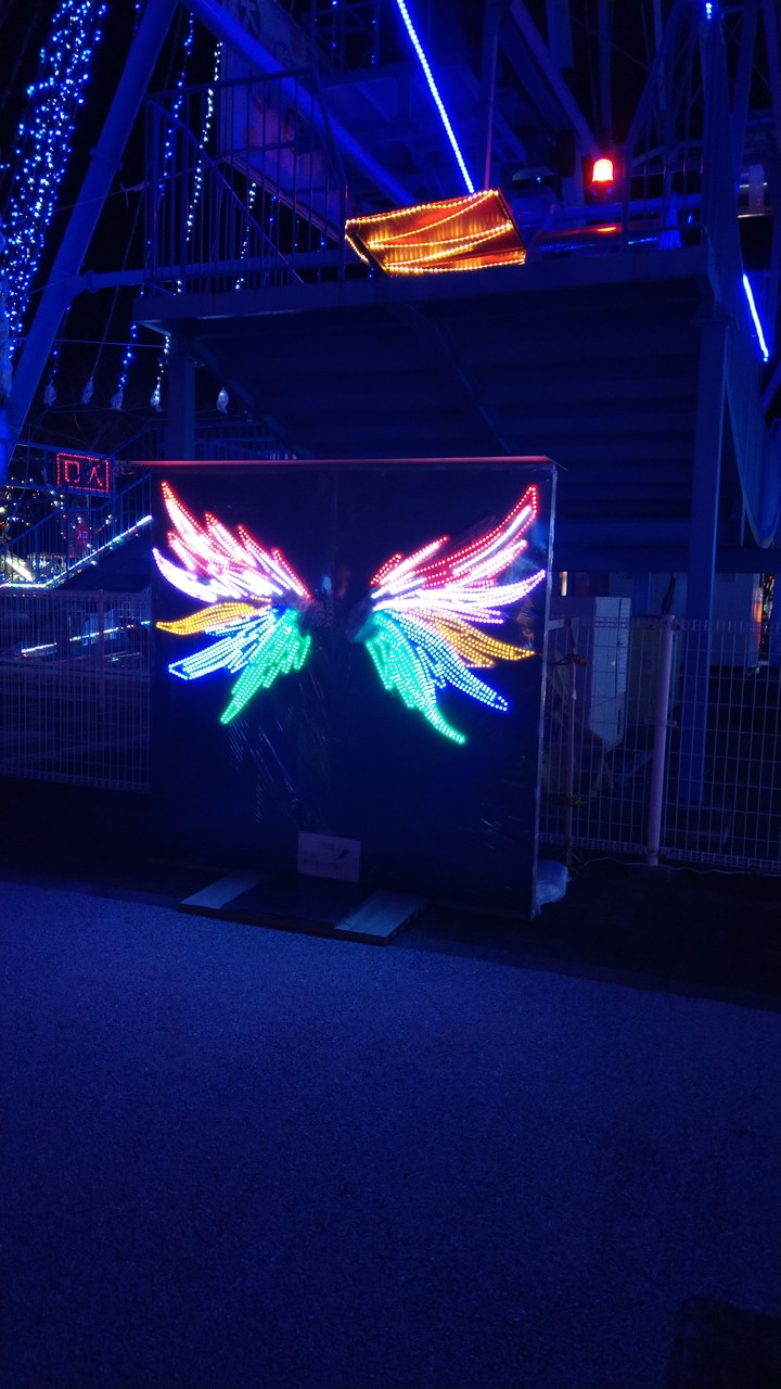 遊園地の場所にいろんなイルミネーションが作られている関係で遊具との光の共演も見ることができたりするんですよね。