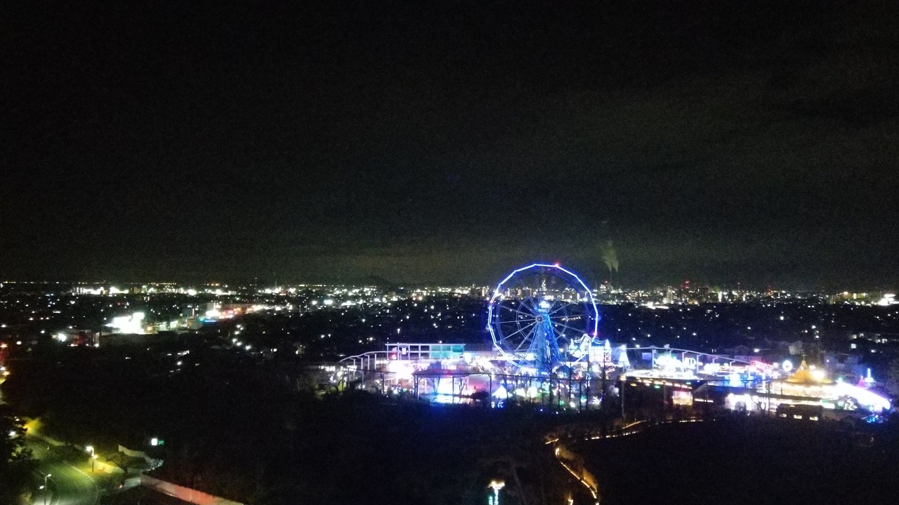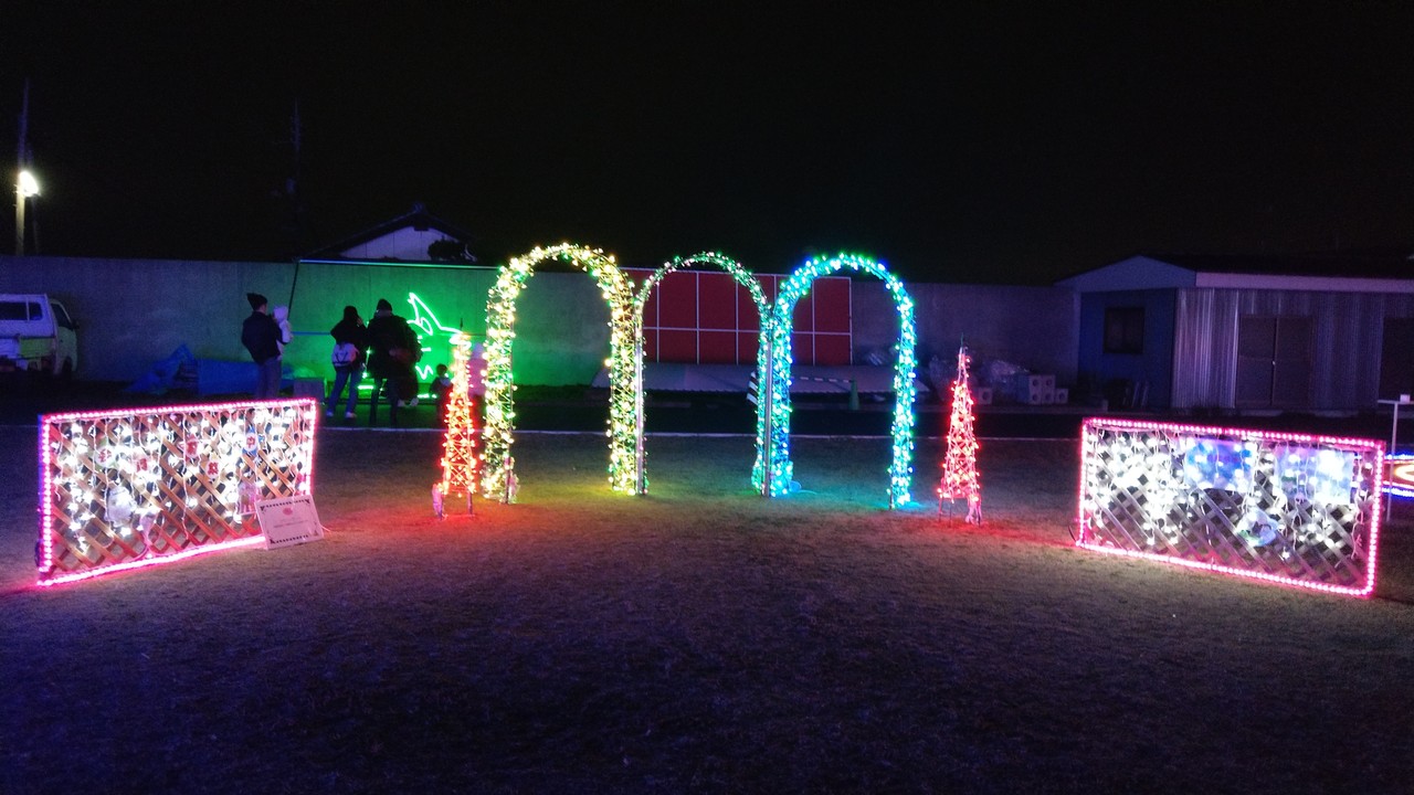 ちょっと遠くに見えるイルミネーション会場(ときわ遊園地)。
