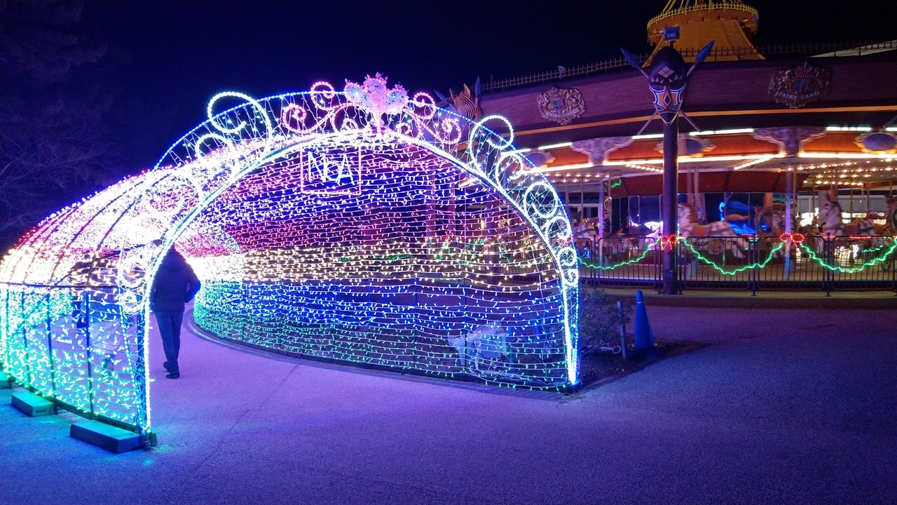 光のトンネルとメリーゴーラウンド。