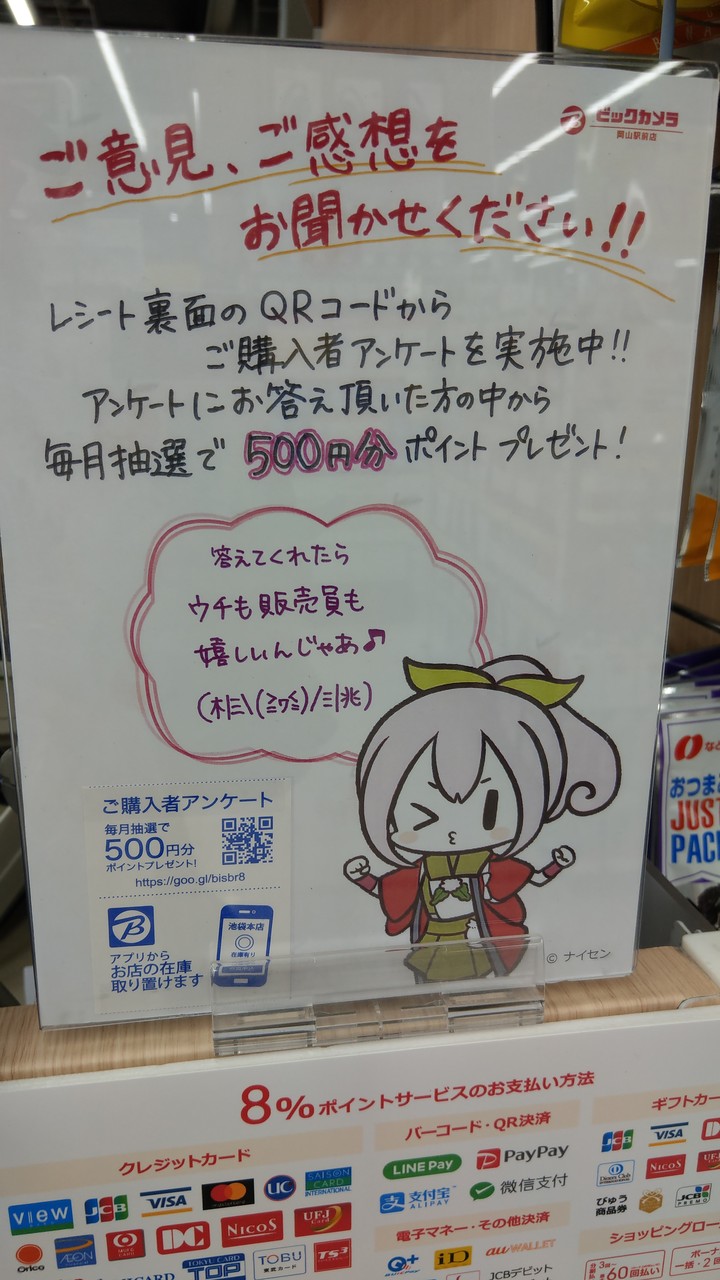 ビックカメラ岡山駅前店にも行ってみました。